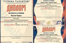 Учащиеся структурного подразделения Детской школы искусств на базе гимназии 25 преподавателя по классу баяна Шадриной Татьяны Владимировны стали победителями Международного фестиваля - конкурса "Страна Талантов"!!! Дипломом лауреата II степени в номинации "Сольное исполнение" был удостоен ученик 5 класса Якупов Рамил! В номинации "Дуэты баянистов": Имуков Стефан и Никитина Полина, Якупов Рамил и Сахапов Тимур стали лауреатами II степени! От всей души поздравляем победителей и желаем юным баянистам дальнейших творческих успехов!!!