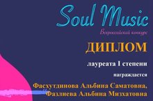 11 января в городе Казани прошел Всероссийский конкурс "Soul music", где преподаватели Фасхутдинова А.С. и Фазлиева А.М. приняли участие в номинации "Учебно-методические работы" и стали обладателями диплома лауреатов 1 степени. Поздравляем наших преподавателей с победой и желаем им новых творческих успехов.