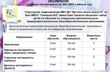 Объявление о наборе обучающихся на 2021-2022 учебный год 27.04.2021