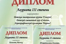 Стали известны результаты IV Республиканского конкурса детского творчества "Таланты Татарстана". Наши воспитанники, учащиеся Халилова Айсылу, Тухватуллина Альмира, детская театральная группа "Сэяхэт", детский смешанный хор "Сэйлэн", хореографический коллектив "Наргиз" успешно представили свои работы и стали обладателями призовых мест в номинациях "Такие разные стихи"( Лауреаты II, III степени) и "Театральное творчество" (Лауреаты III степени), преподаватели Ахсанова С.Т., Аглямова А.Р., Мухлисуллина Г.Н., Кадырова Р.А.,Шайдуллина Д.Н., Вафина А.Р. Поздравляем ребят и преподавателей с победой и желаем новых творческих успехов!