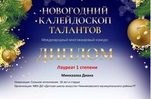 Преподаватель духовых инструментов Минхазова Диана Мансуровна приняла участие в Международном многожанровом конкурсе "Новогодний калейдоскоп талантов" и удостоилась звания Лауреата I степени в номинации "Сольное исполнение 18 лет и старше". Поздравляем Диану Мансуровну с победой и гордимся тем, что в Детской школе искусств работают такие талантливые преподаватели!