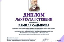 Поздравляем учащуюся 3 -го класса отделения "Музыкальное искусство" (структурное подразделение на базе гимназии №1) Садыкову Рамилю, которая стала победителем II Всероссийской олимпиады по музыкальной литературе среди обучающихся музыкальных школ и детских школ искусств "Корифеи музыкального искусства. П.И.Чайковский", пополнив копилку достижений Дипломом лауреата I степени. Благодарственым письмом за отличную подготовку победительницы к Олимпиаде оргкомитет Творческого проекта "Ми, фа, соль" наградил преподавателя Рамили - Фасхутдинову Альбину Саматовну.