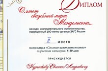 Куршаков Евгений (класс преподавателя Кунгурова А.В.) стал лауреатом 2 степени муниципального конкурса "О, этот свадебный марш Мендельсона.."
