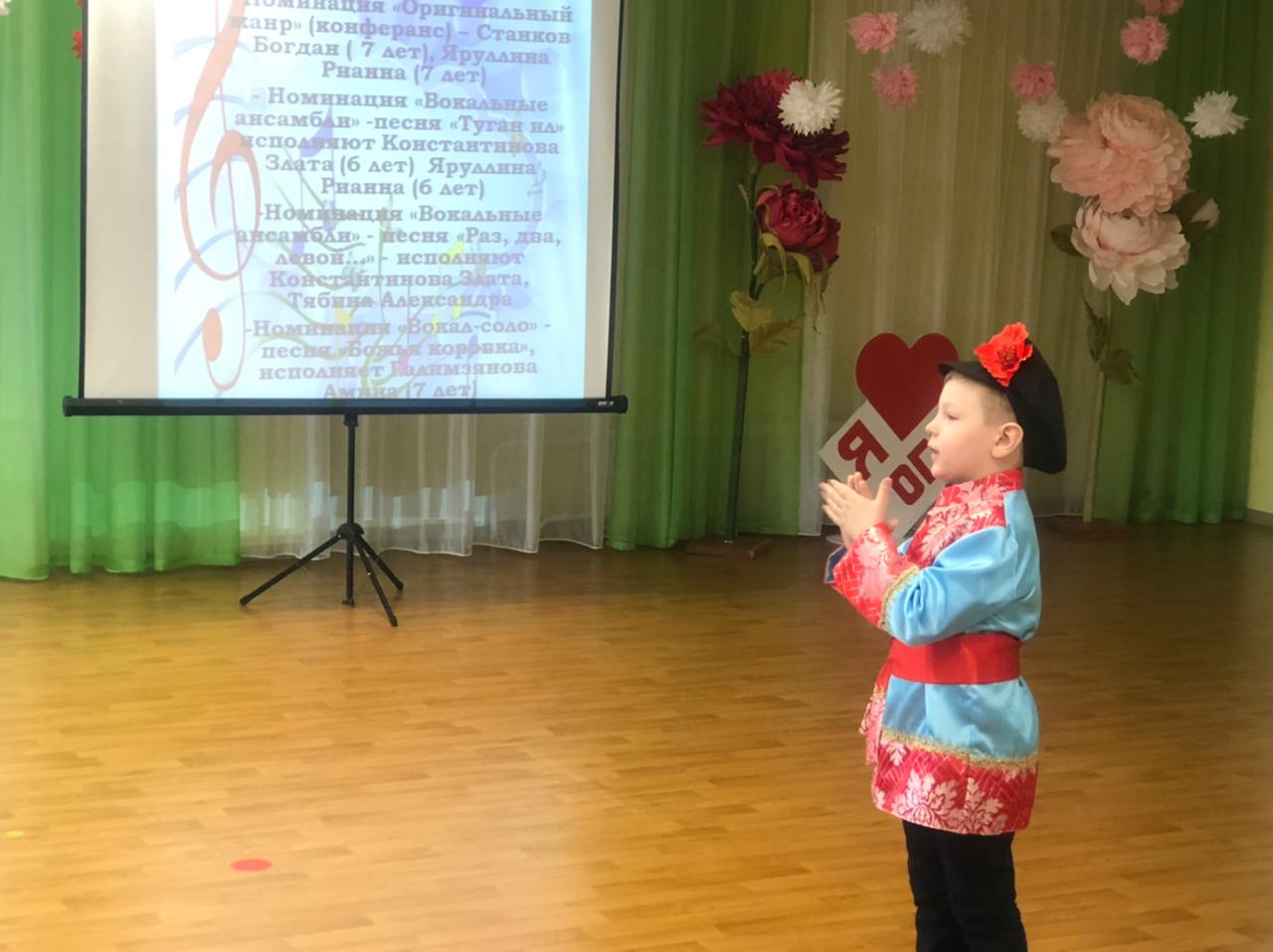 Опубликовано: 20.04.2022В детском саду «Огонек» прошел отборочный тур «Фестиваль детского творчества». Цель: популяризация и развитие детского творчества в художественно-эстетической направленности, выявление творчески одаренных детей и их поддержка. Каждый ребенок сегодня получил заряд бодрости, энергии хорошего настроения, и конечно же подарок».
