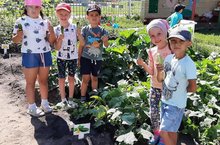 Ежегодно воспитанники вместе с педагогами выращивают овощи в огороде на территории детского сада.