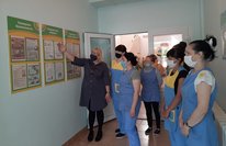 Афанасьева Наталья Алексеевна провела профилактическую беседу с облуживающим персоналом по ОТ и ТБ, далее предложила просмотреть видеообращения о мерах по предупреждению пожаров. А Липунова Ландыш Сагитовна провела профилактическую беседу с младшим обслуживающим персоналом на тему " Меры оказания первой помощи пострадавшим на производстве, профилактика растяжений"