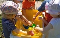 Погода позволяет играть с водой и принимать солнечные ванны! Игры с водой - одна из самых приятных способов обучения. В ходе игры с водой дети знакомятся с её различным состоянием. Это отличное настроение, повышенный жизненный тонус, масса полезных впечатлений и знаний.
