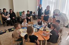 Старшие дети- волонтёры позанимались с малышами в сенсорной комнате