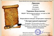 Поздравляем с победой во Всероссийском конкурсе литературного творчества "Литературный вернисаж", в номинации "И стих польётся сам собою... " Торошина Костю с дипломом II степени! В номинации "О чём читаю - то рисую... " Уразбаеву Самиру с дипломом III степени и Рахманову Милану с дипломом II степени! -