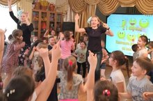 В музыкальном зале детей встречали Смешинка и Веселинка, которые вместе с детьми пели, играли и танцевали! -