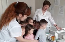 Среди детей проведён конкурс рисунков на асфальте " Я укола не боюсь,если надо уколюсь".Экскурсию в медицинский кабинет и лекцию провела врач- педиатр ООМПДиП Морокова Н.А. на тему "О пользе прививок"