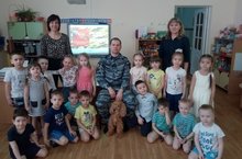 В гости приходил папа Мифтахова Керима, провёл беседу с детьми и рассказал о своей профессии "Кинолог". Но пришёл он не один, а со своей обученной собакой. ( у собаки есть медицинский паспорт)