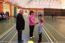 На региональной спартакиаде среди воспитанников ДОУ,которая прошла сегодня, рапорт главному судье отдал воспитанник 12 группы , Мартиросян Артур! Молодец!), а Грязнова Наталья Михайловна приняла активное участие в команде " Ну,погоди!"С