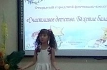 Сегодня, Саетова Аделя, приняла участие в открытом городском фестивале-конкурсе "Счастливое детство " в ДОУ#92. Молодец!)