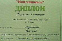Наша выпускница Абрамова Полина приняла участие в Открытом региональном фестивале - конкурсе татарского искусства "Моң чишмәсе" который проходит в Набережных Челнах. Она прочитала стихотворения великих татарких поэтов. (Муса джалиль "Красная ромашка", Габдулла Тукай "Бала белән күбәләк"). Полина представляла наш детский сад и в номинации "Театральное икусство" получила диплом ЛАУРЕАТА I степени. Поздравляем с победой и желаем дальнейших успехов.