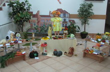 В детском саду все воспитанники стали участниками весёлого праздника, на котром они встретились со сказочными персонажами, пели и играли. Началось оформление выставки "Урожай - 2014" в холле детского сада.