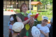 8 мая в нашем центре развития прошло праздничное мероприятие с участием детей из 12, 13 и 14 групп (старшие и подготовительная группы). Ребята подготовили и исполнили патриотические песни, стихи, воспитанники 12 группы - матроский танец. Дети показали свою смекалку, ловкость в эстафете и играх.