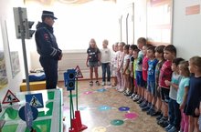 На основании приказа МО и Н РТ об усилении мер по обеспечению безопасности и предупреждению преступных посягательств в отношении несовершеннолетних 11 сентября в детском саду состоялась встреча воспитанников подготовительных к школе групп с сотрудником правоохранительных органов, младшим сержантом полиции, инспектором ДПС ГИБДД Габдрахмановым Р.Р. Он провел «урок безопасности» и рассказал детям о необходимости соблюдения ПДД, о правилах поведения с незнакомыми людьми, в общественных местах.