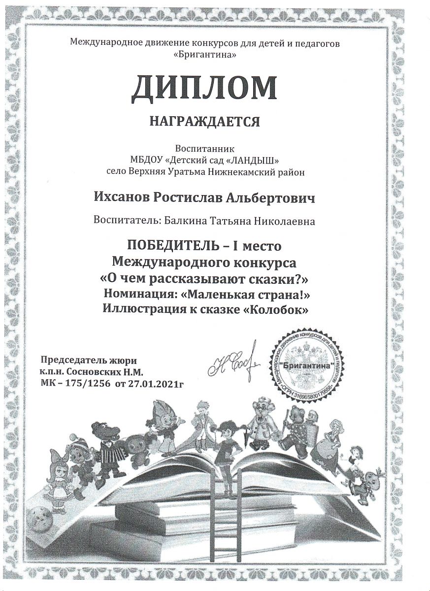 Диплом Ихсанов Ростислав 1 место в конкурсе рисунков