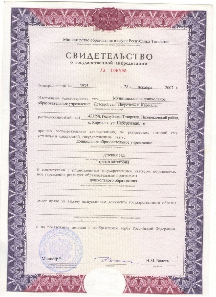 Короткое название: МБДОУ "Берёзка" с.Кармалы НМР РТ