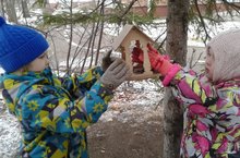 В середине ноября отмечается "Синичкин день".У наших предков существовало поверье, что именно 12 ноября зимующие птицы прилетают в города и села. В этот день взрослые чинили старые птичьи кормушки и вешали новые, а дети кормили птиц. Наши воспитанники изготовили плакат к этому, а также вместе с воспитателями повесили кормушки и положили угощение для птиц.