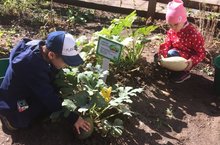 Вот и пришла пора собирать урожай на огороде детского сада. С удовольствием ребята срывают с грядки спелые помидоры, кабачки, морковь.
