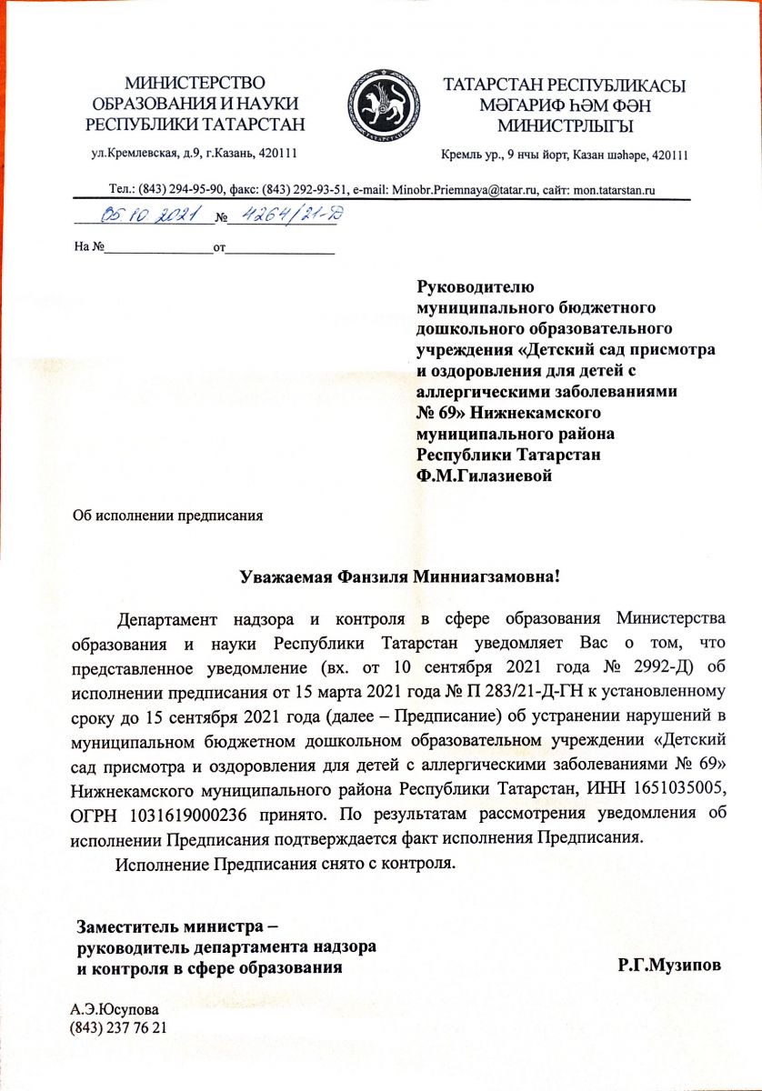 | Короткое название: | МБДОУ "Детский сад присмотра и оздоровления для детей с аллергическими заболеваниями №69" НМР РТ |