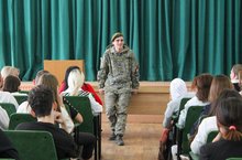 Ильнар Анасович рассказал студентам о видах родов войск в Российской Армии, о цели службы в Армии России, поделился своими достижениями на службе. Студентам были продемонстрированы фотографии и видеосюжеты укладки парашюта, прыжков с парашютом, быт солдата разведчика Российской Армии.