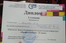 26 апреля на базе ГАПОУ «Нижнекамский многопрофильный колледж» прошла Открытая всероссийская научно-исследовательская конференция «Профессионалы-21 века». Муллина Юлия, Петрова Анастасия под руководством Дорофеевой Н. К. получили диплом превой степени. Поздравляем!