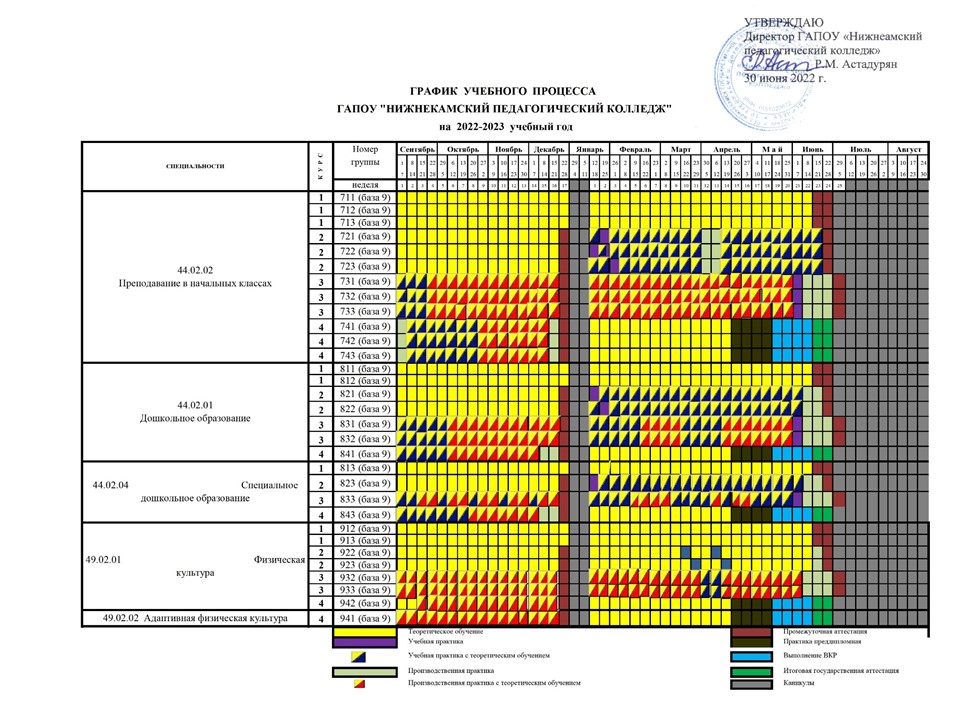График учебного процесса ГАПОУ "Нижнекамский педагогический колледж"