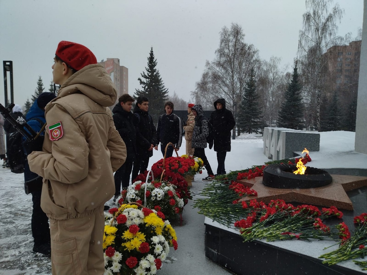 3 декабрь көнне Җиңү мемориалында Билгесез солдат көненә багышланган митинг узды. "Түбән Кама педагогика көллияте"хәрби хәрәкәтләрдә һәлак булган солдатлар истәлегенә Мәңгелек утка чәчәкләр салды.