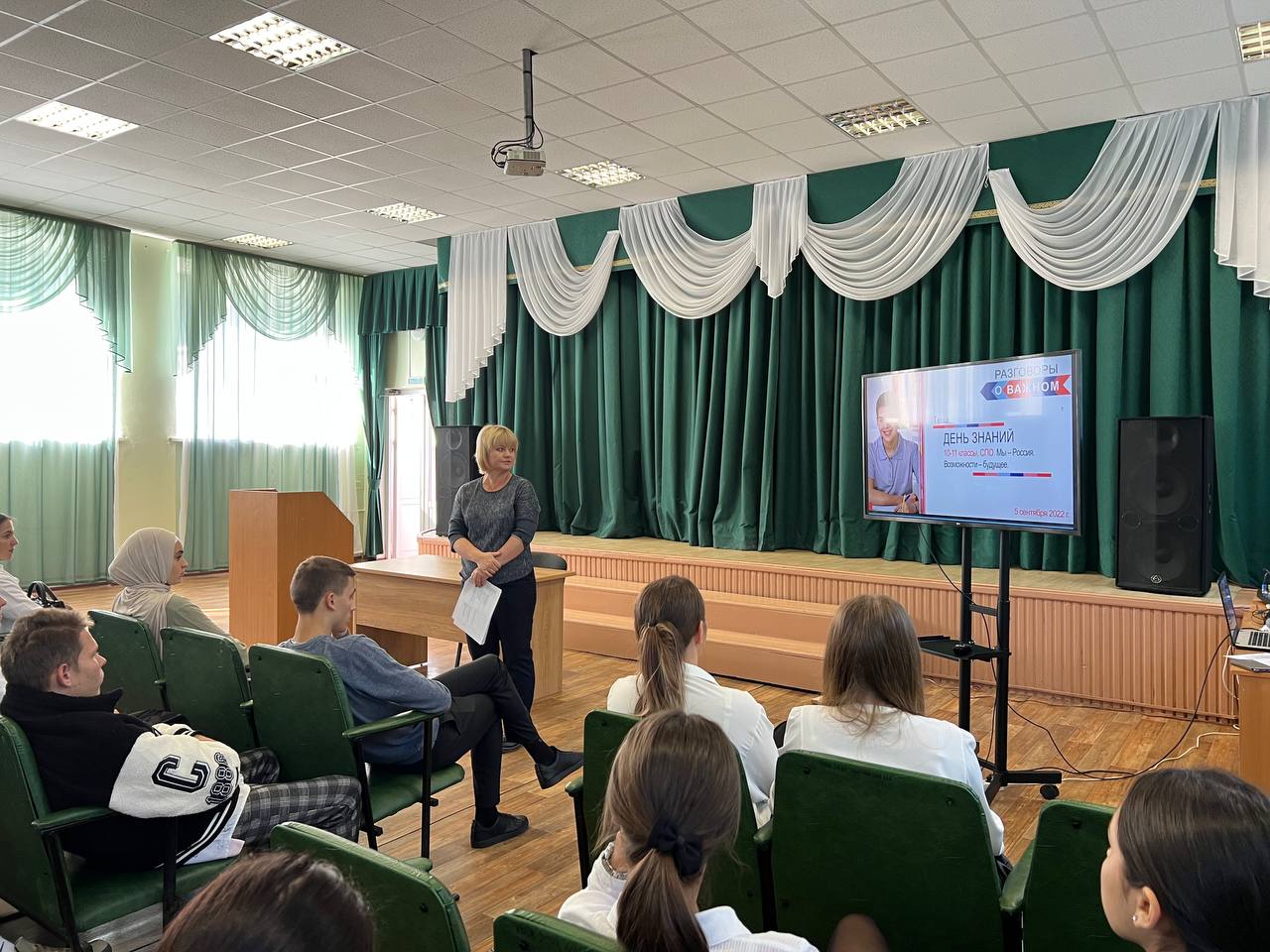 Опубликовано: 05.09.20225 сентября прошло первое занятие «Разговоры о важном». Студентам рассказали о президентской платформе «Россия – страна возможностей», о том, какие она дает возможности подросткам, а также об олимпиадах. Занятия проводились в форме интерактивной беседы.
