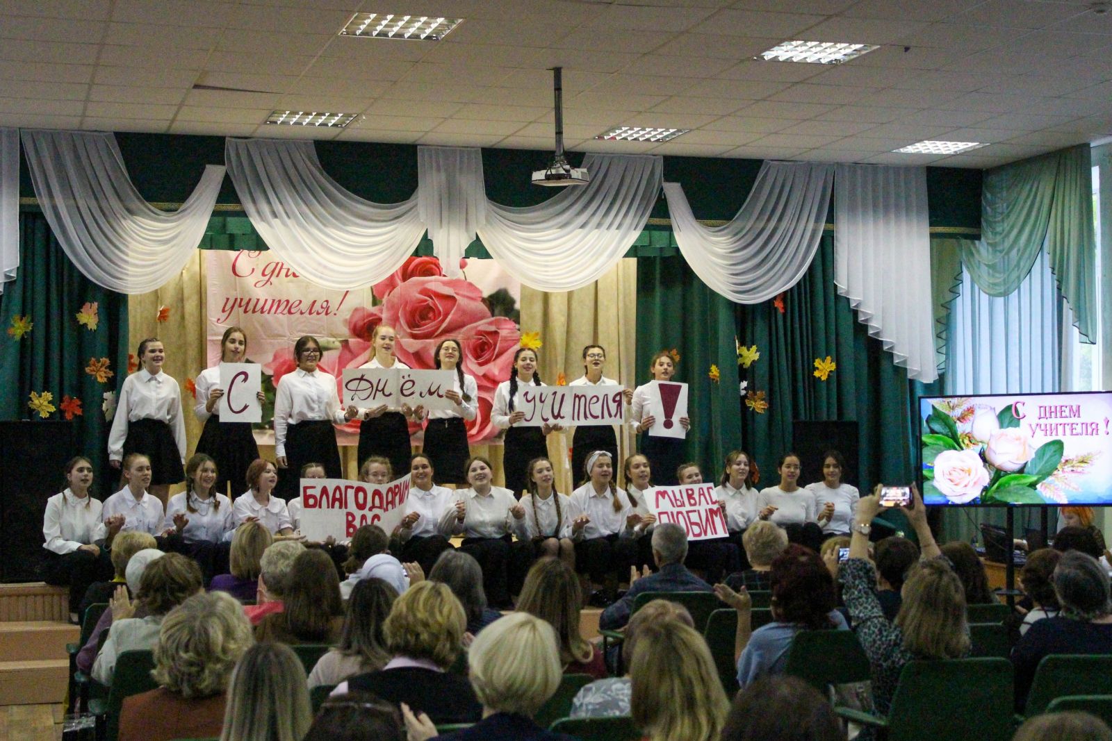 Со сцены звучали теплые поздравления, слова благодарности за непростой и благородный труд, за внимание и терпение, за желание видеть своих учеников успешными и счастливыми.