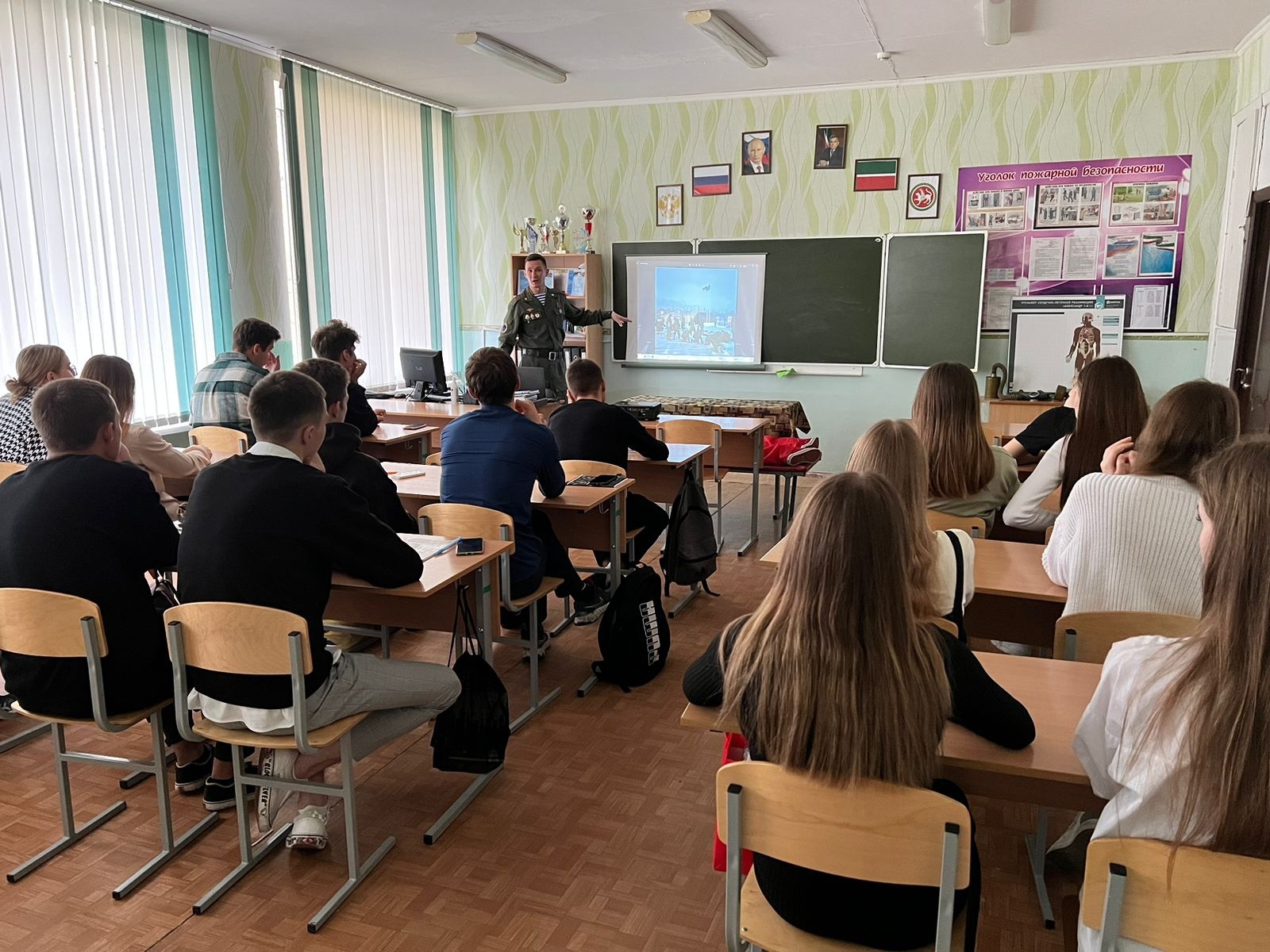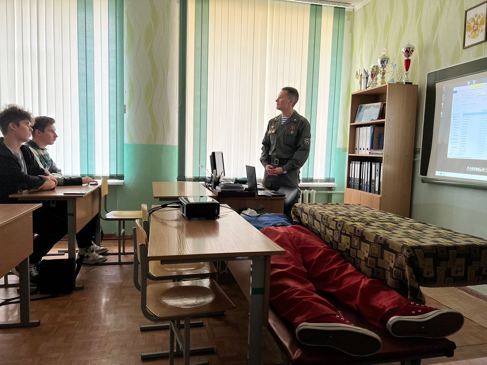 Опубликовано: 11.10.202211 октября на классный час по патриотическому воспитанию преподаватель ОБЖ Чикунов Дмитрий Владимирович пригласил Гвардии рядового запаса, разведчика 2РСпН воздушно-десантных войск Абукаева Ильнара Анасовича.