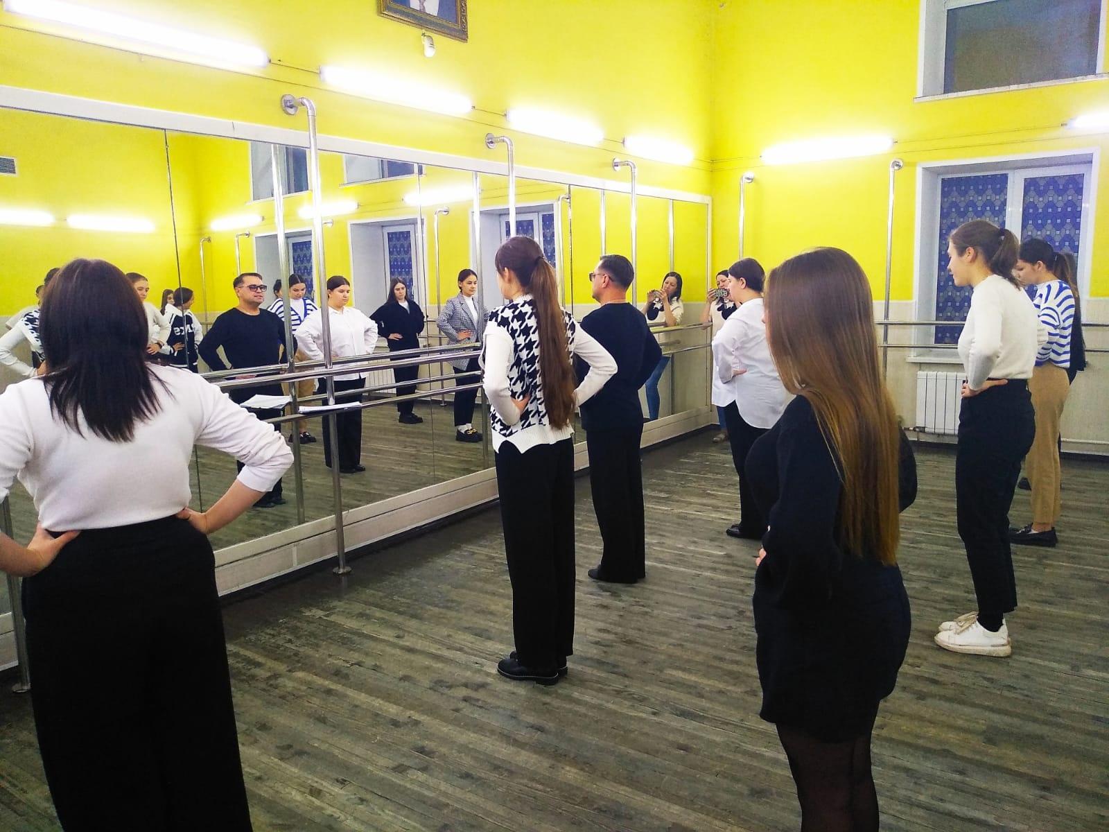 Опубликовано: 09.11.20228 ноября 723 группа в количестве 15 студентов посетила мастер-класс: "В мире вальса" ансамбля песни и танца "Нардуган" по программе Пушкинская карта.
