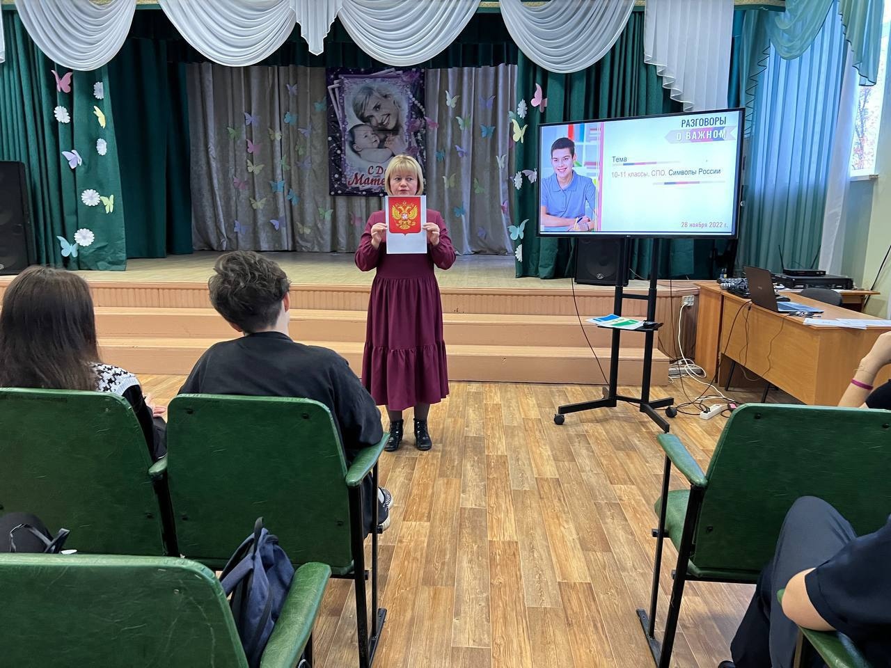 Опубликовано: 28.11.2022Сегодня 28 ноября в нашем колледже преподаватели провели очередной Разговор о важном на тему: "Символы России".