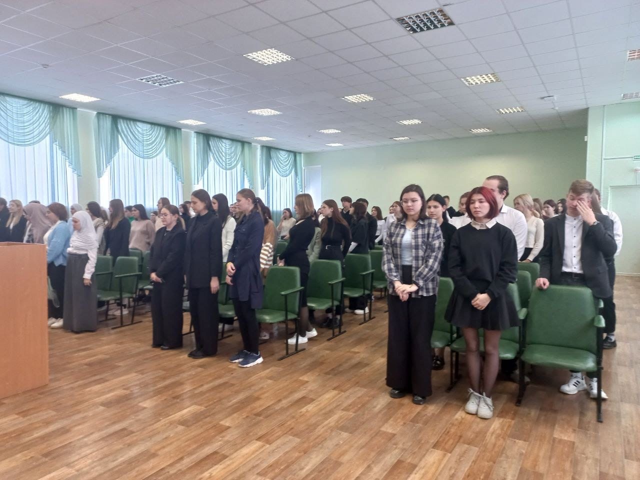 В конце классного часа студенты почтили память воинов минутой молчания.