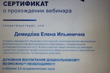 Педагог Демидова Е.И. прослушала вебинар Духовное воспитание дошкольников?!Возможно?!Необходимо!!!