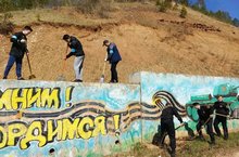 В преддверии Дня Победы, Детская районная Дума и отряд Форпост-Эдельвейс ДРД, начали реконструкцию Стены Памяти 07.05.2018