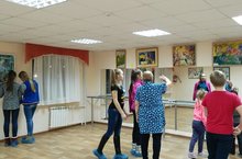 Учащиеся объединения "Весёлая палитра", под руководством педагога Ахмедовой Галины Хуршедовны, изучают технику представленных выпускных работ.