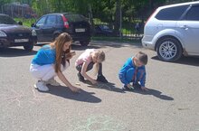 В День защиты детей активисты Детской районной Думы с детишками рисовали на асфальте.