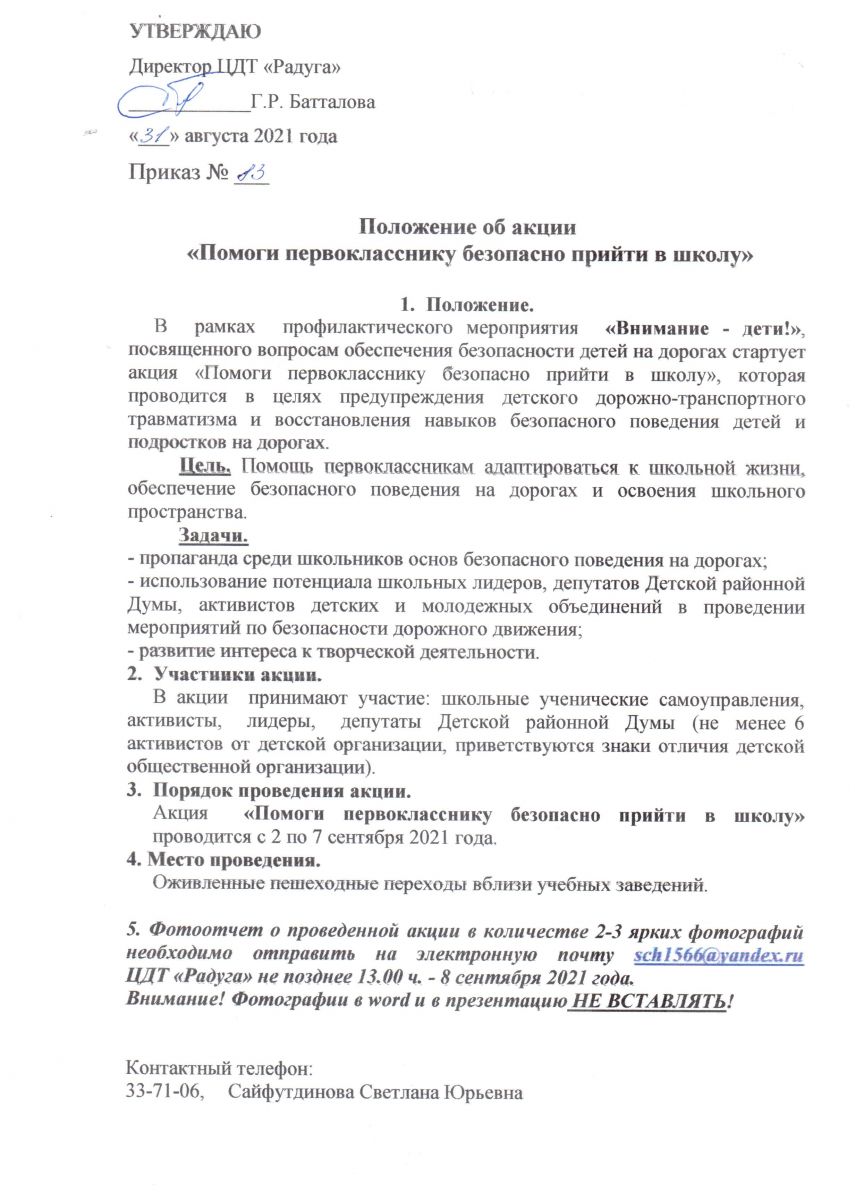 Положение о проведении акции "Помоги первокласснику безопасно прийти в школу"