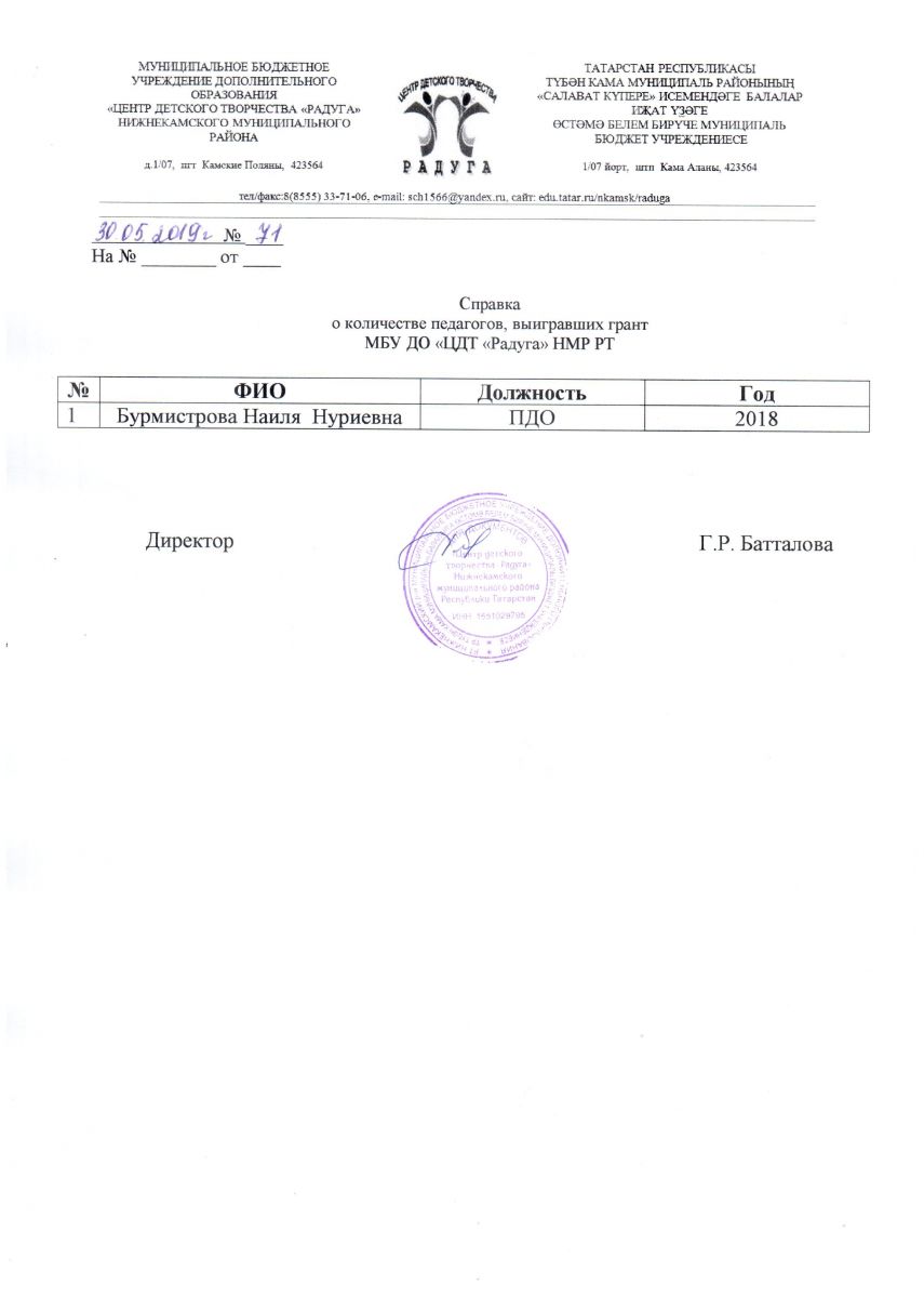 Муниципальное бюджетное учреждение дополнительного образования «Центр детского творчества «Радуга» Нижнекамского муниципального района Республики Татарстан