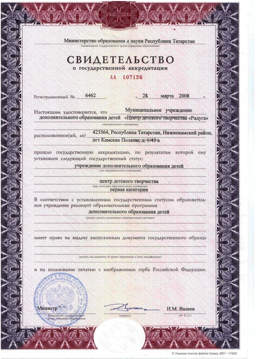 Свидетельство о государственной аккредитации АА 107126, рег №6462 от 28 марта 2008 года.
