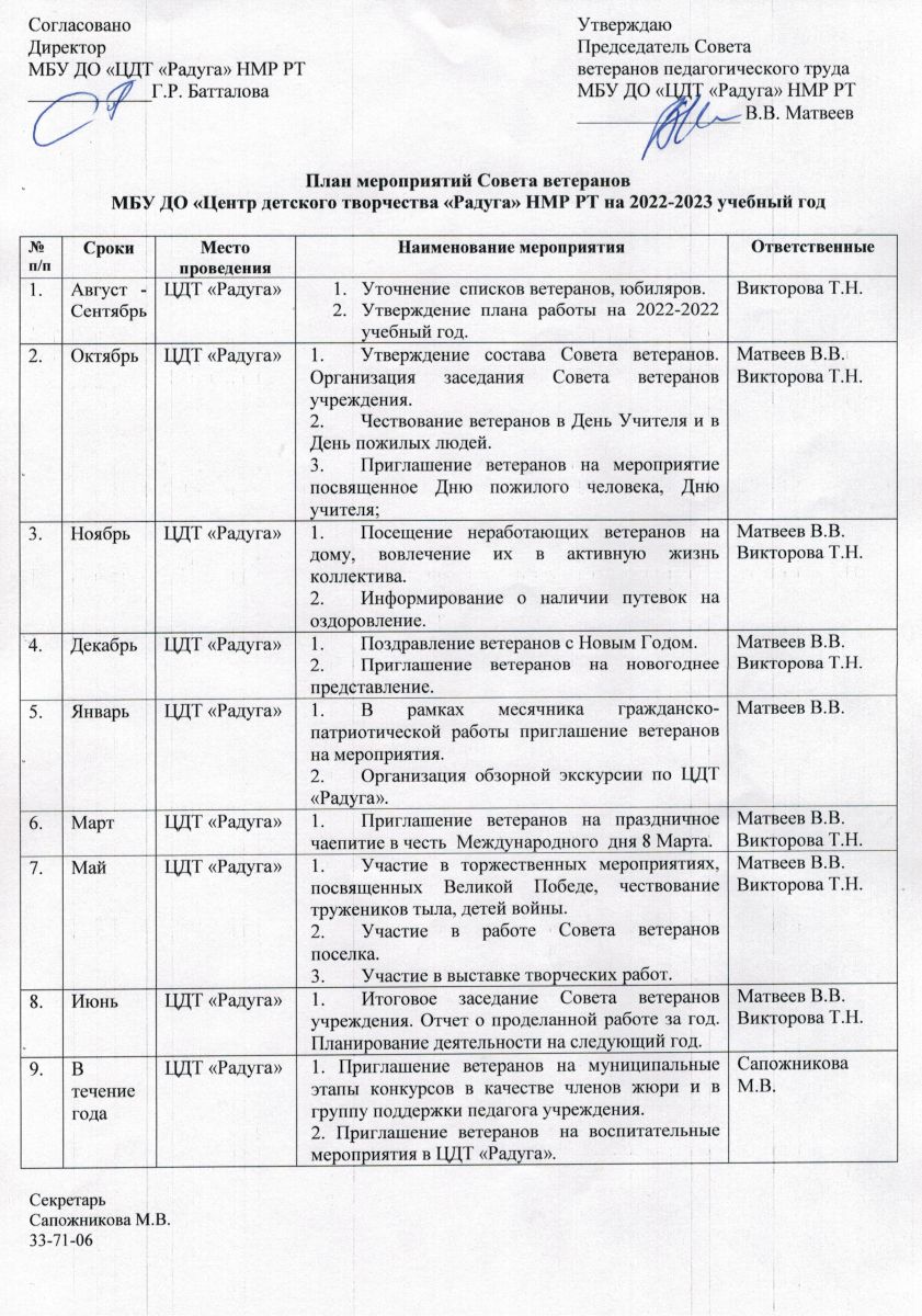 План мероприятий Совета ветеранов на 2022-2023 учебный год