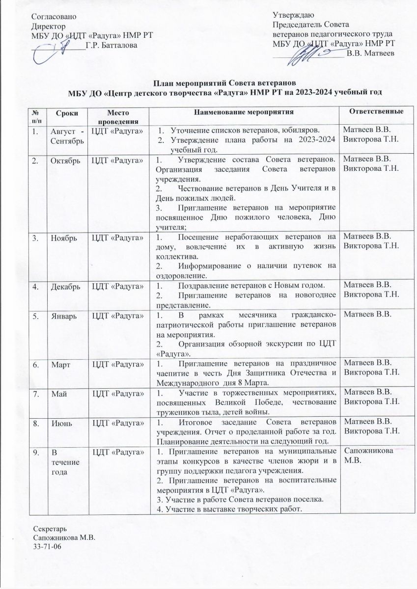План мероприятий Совета ветеранов на 2023-2024 учебный год
