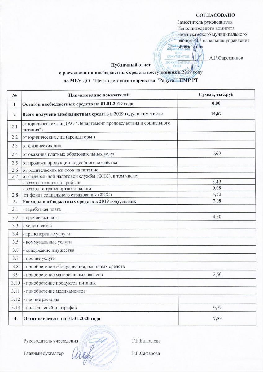 Публичный отчет о расходовании внебюджетных средств поступивших в 2019 году