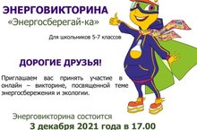 Энерговикторина «Энергосберегай-ка» для школьников 30.11.2021