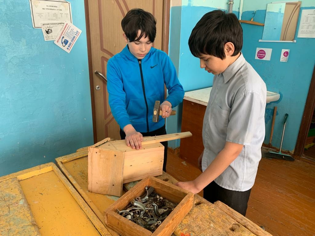 Ребята из 7 класса готовят домики для пернатых, которые уже на подлёте. Скворечник ребята выполняют из подручных материалов, но домики получаются замечательные...