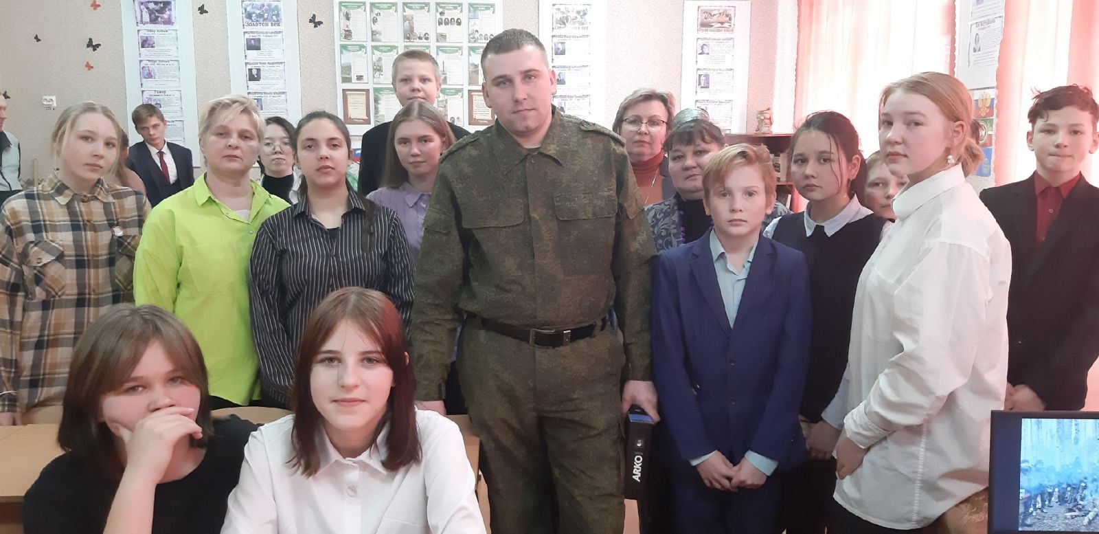 В конце встречи школьники обняли гостя, пожали ему руку и сделали совместное фото на память. -